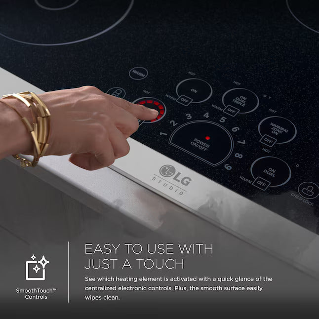 LG’s premium 30" radiant cooktop is equipped with steady-heat technology to deliver constant heat at any temperature for more precise cooking control. The best part is, the temperature settings respond quickly to power setting adjustments so there is less chance you'll burn your food. LG cooktops truly are style and convenience in perfect harmony.