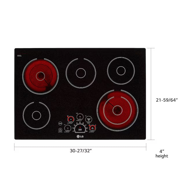 LG 30-in 5 burners Smooth Surface (Radiant) Black Electric Cooktop